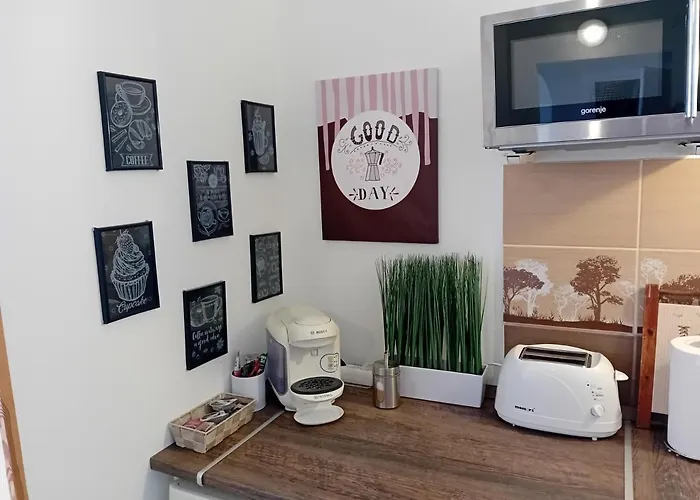 Rendete il vostro soggiorno ancora più confortevole grazie alla cucina completamente attrezzata dell'alloggio, fornita di un bollitore elettrico, un frigo e un forno per soddisfare ogni vostra esigenza. Il treno cittadino di Rakosfalva è situato a soli 550 metri.